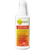 Solarepel is a non-aerosol citronella/sunscreen spray that provides a sun protection factor of 25 against UVA and UVB rays while moisturizing the skin.
