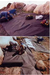 Planters Landscape Paper is a low cost substitute for landscape fabric, and biodegradable. It is a recycled fiber weed barrier that is 8 mil, porous black, with flexibility to hug the soil and produce strength during installation. When used under organic mulch, this product will keep weeds from growing and will allow the mulch to solidify before it degrades and disappears. It's easy to use! Weed wack the area you with to replant. Roll out the Planters Landscape Paper, overlapping the edges 3". Keep in place with stakes were necessary. With a knife or scissors, cut around rocks, trees, shrubs and to any size and shape necessary. Cut slits plantings and plant right through the paper, or gently work existing small plants up through the slits. Broadcast mulch 3" deep and irrigate as normal. This is a great way to cut costs on chemicals, time and money.